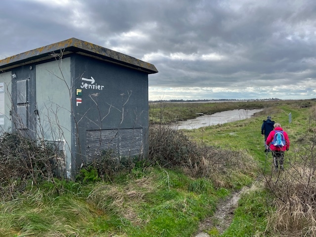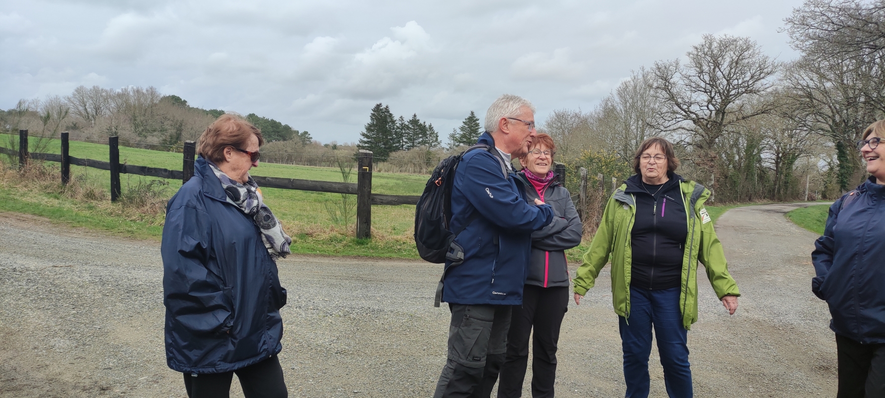 Seulement 5 marcheurs aujourd’hui. Le ciel est encore très gris. Un peu de bruine au départ de La Chapelle mais nous espérons une belle amélioration dans la matinée.