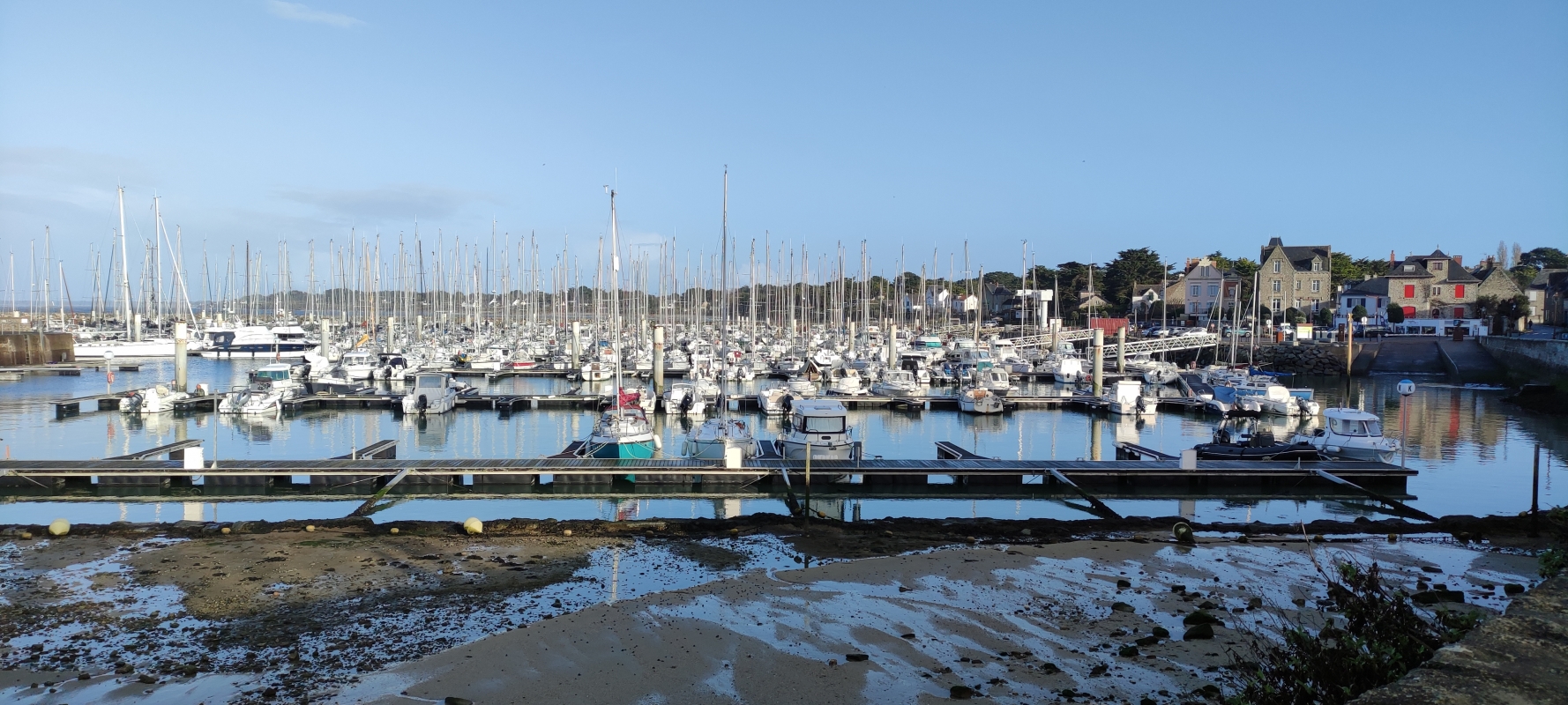 En plus une route barrée à l’entrée de Piriac nous oblige à faire quelques kilomètres supplémentaires. Sur le parking du port, le soleil fait un peu son apparition, cela nous redonne le moral. Mais au loin, le ciel est bien noir. Allons-nous en prendre une ?