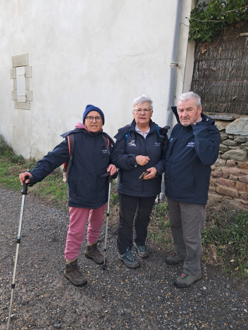 Nous sommes 15 marcheurs pour aller à Piriac : Françoise M, Françoise A, Jean-François, Daniel, Thérèse, Antoine, Marie-Annette, Marie France, Bernadette G, Brigitte G, Jean, Evelyne, Marie-Thé, Bernard L et Marie-Reine.