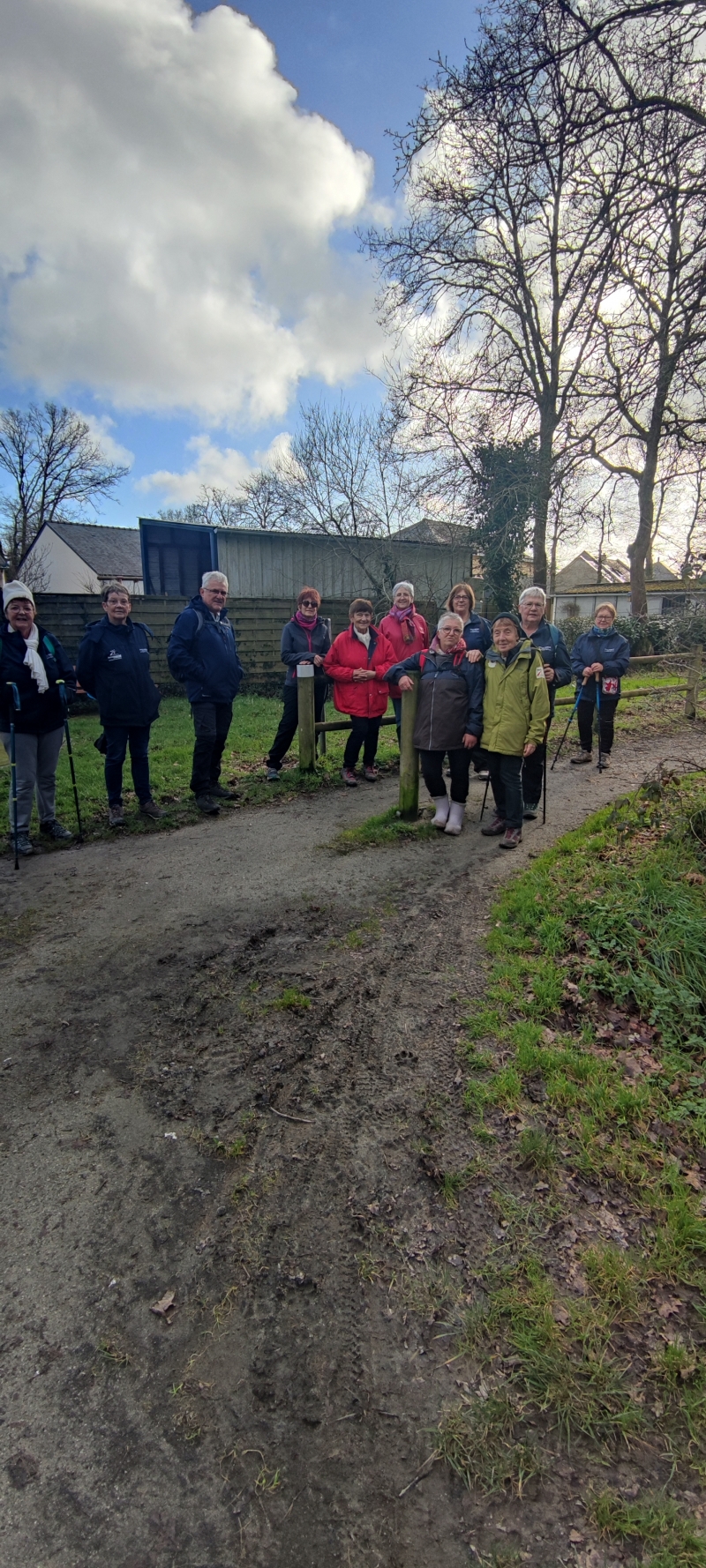 Ciel toujours nuageux mais nous sommes quand même 12 marcheurs pour aller jusqu’à L’Angle Bertho : Marie-Pierre, Bernadette G, Jocelyne, Claudine, Josiane, Christian LM, Françoise LM, Brigitte G, Anne-Marie, Margaret, Monique M et Evelyne.