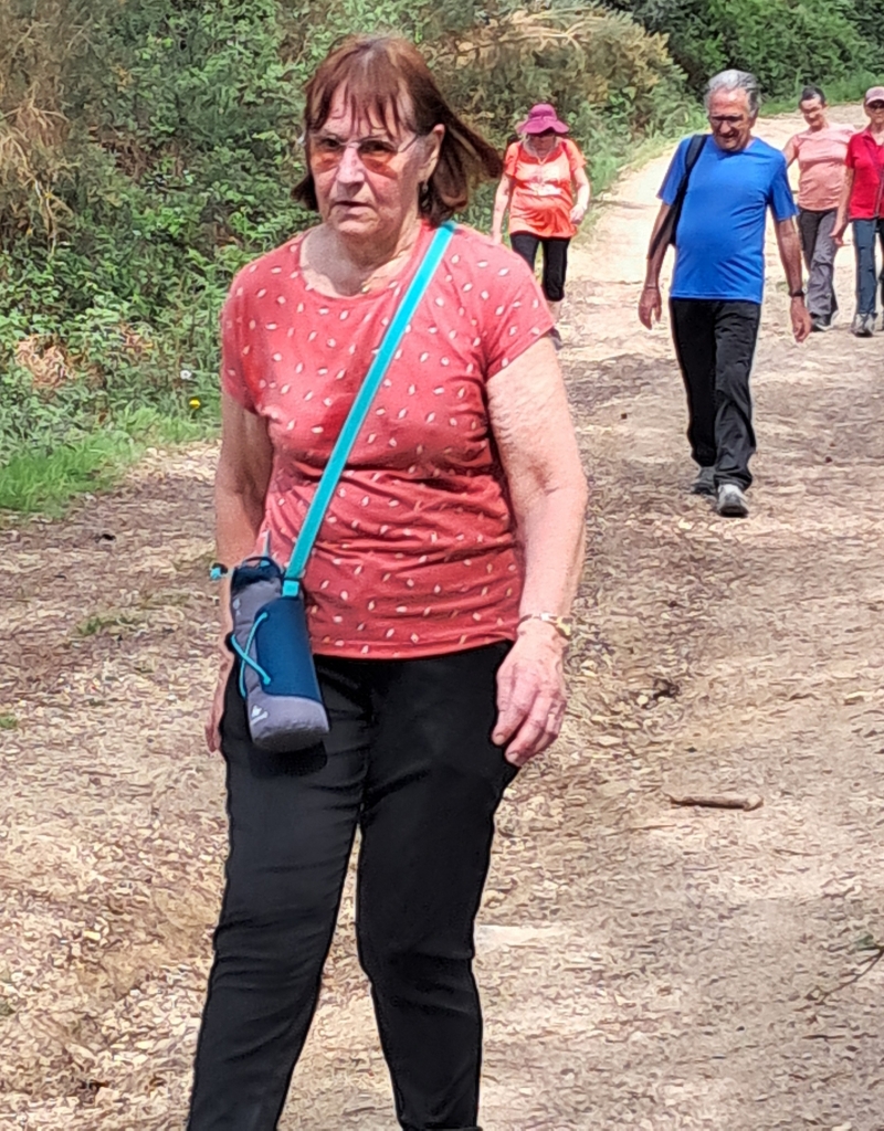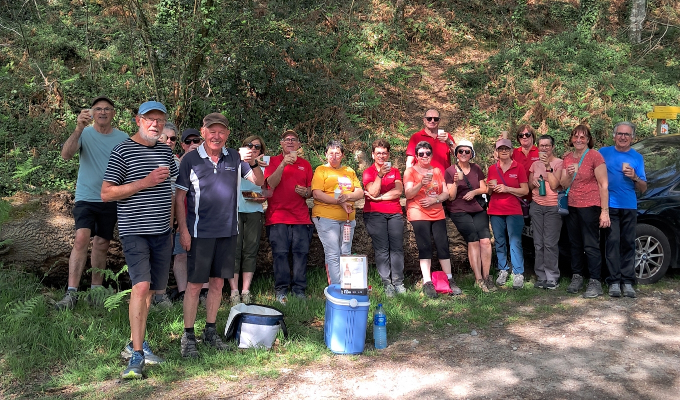 Circuit menant à Coulement. Nous sommes 16 : Jocelyne, Annette, Christian L, Françoise L, Marie-Pierre, Marie-Annick, Christian D, Thérèse, Odile, Anne-Marie, Margaret, Evelyne, Monique M, Chantal, Philippe, Bernadette G.